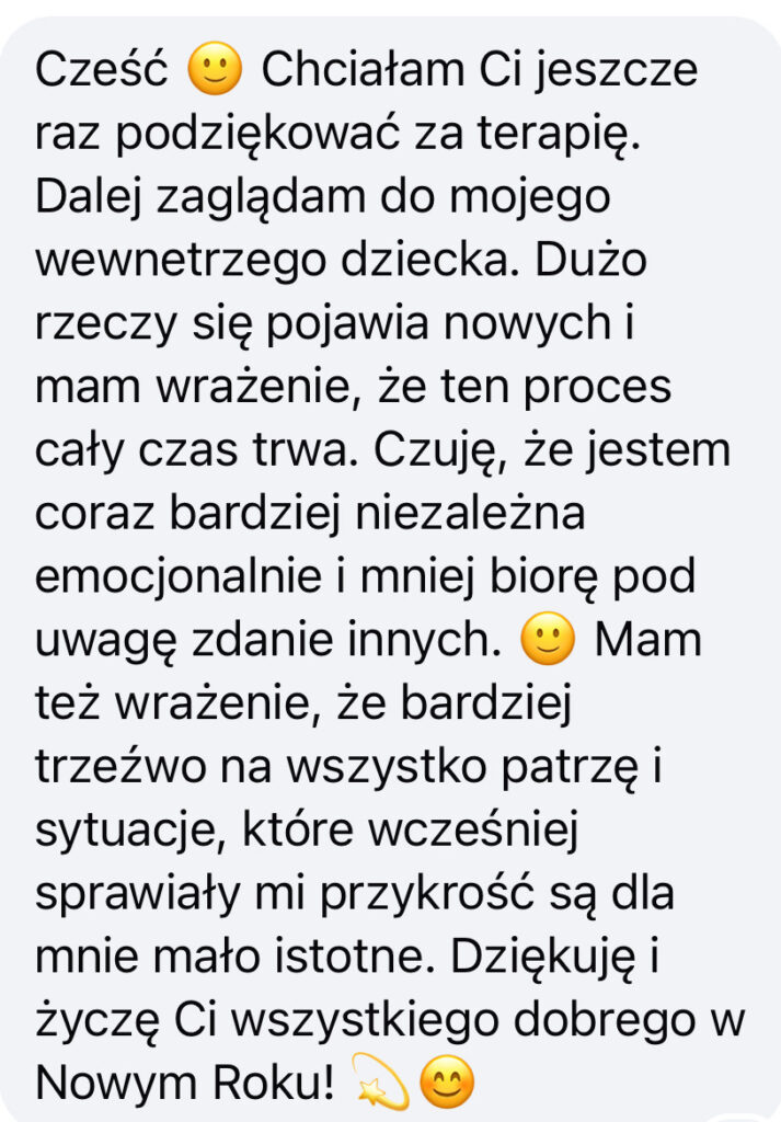 Może wiesz już, że krzyczysz, bo nikt Cię nie słuchał w dzieciństwie. Może rozumiesz, skąd bierze się Twój lęk przed odrzuceniem. Może potrafisz nazwać swoje emocje i wiesz, które schematy się powtarzają.